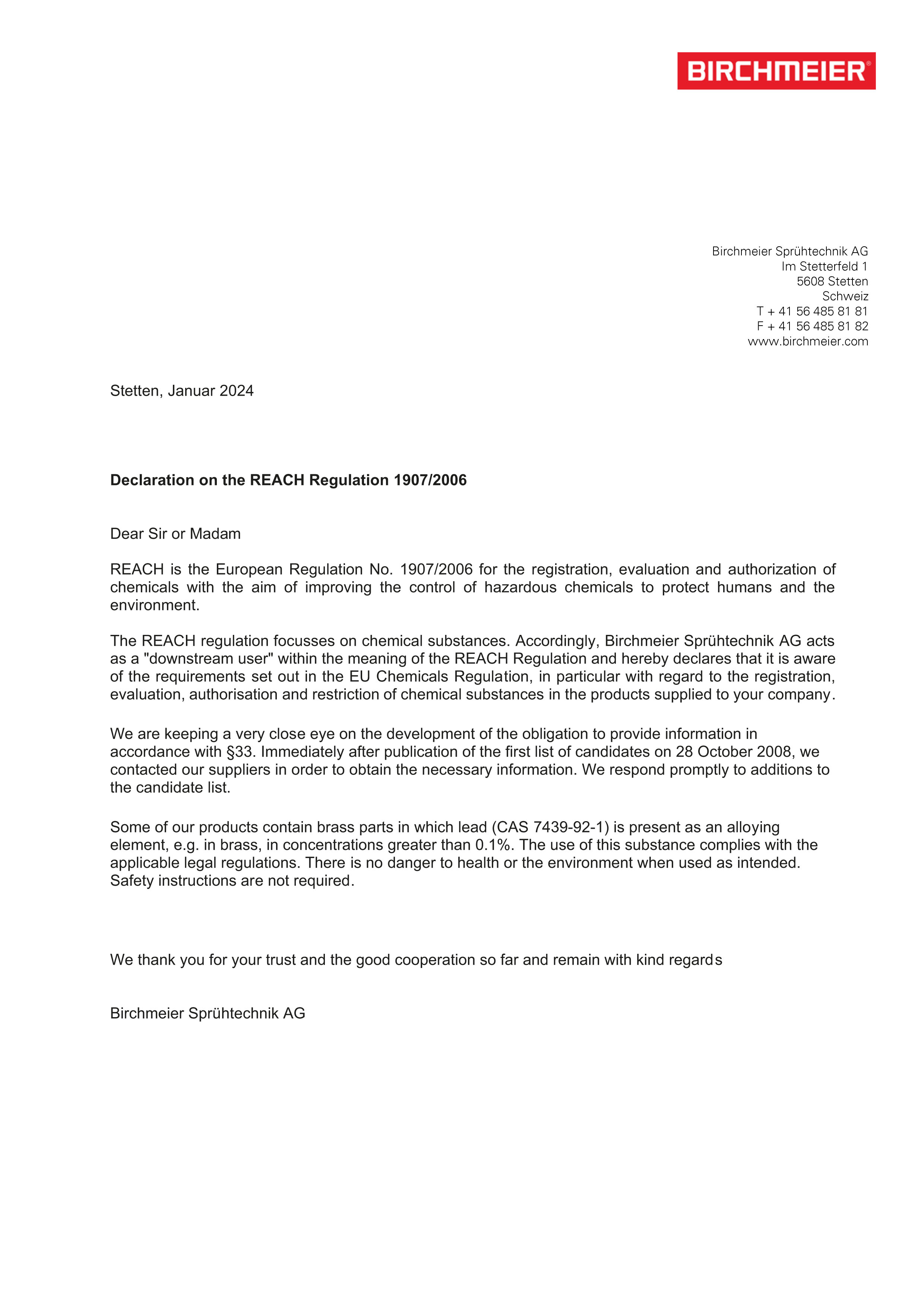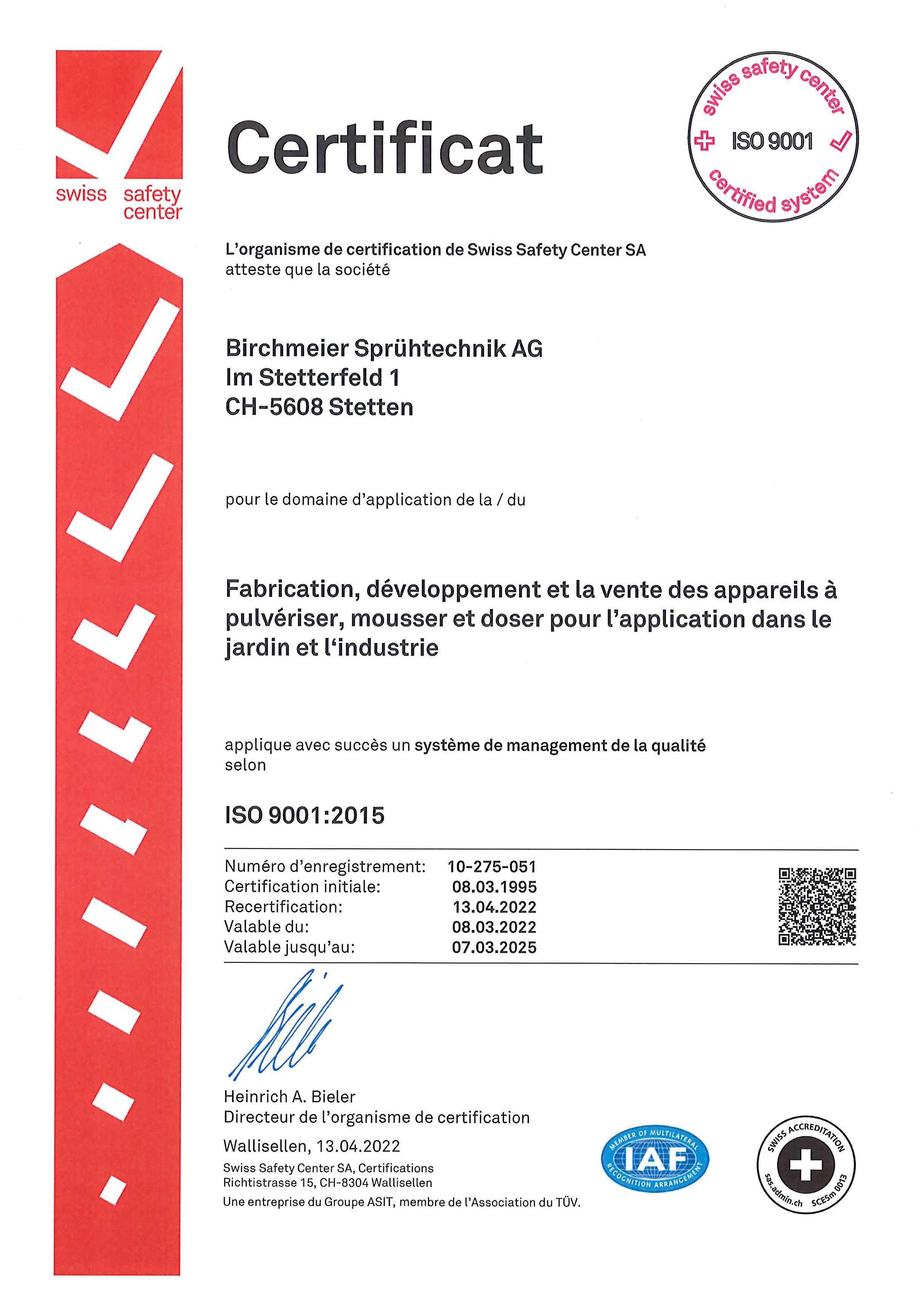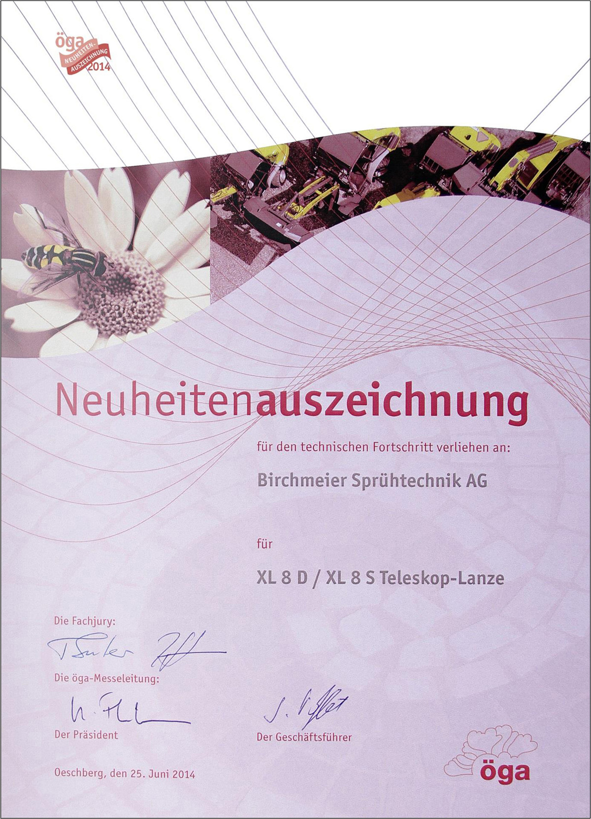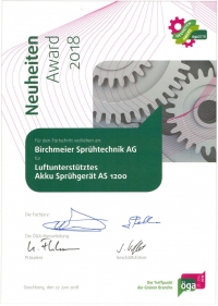 Décerné à Birchmeier Sprühtechnik AG pour la lance télescopique XL 8 D / XL 8 S pour le progrès technique.