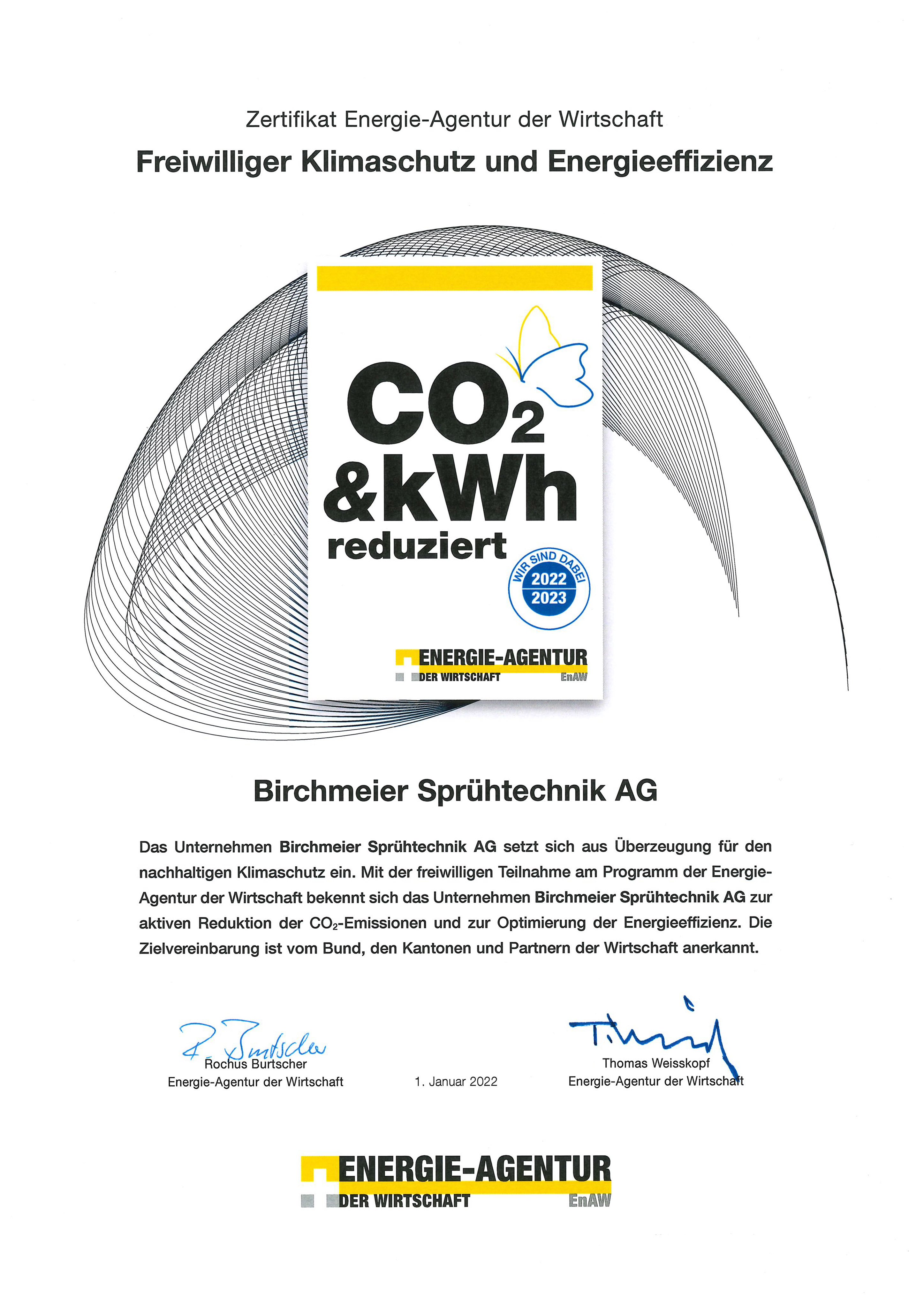 Participation volontaire au programme de l'Agence de l'énergie pour les entreprises pour réduire activement les émissions de CO2 et optimiser l'efficacité énergétique.
