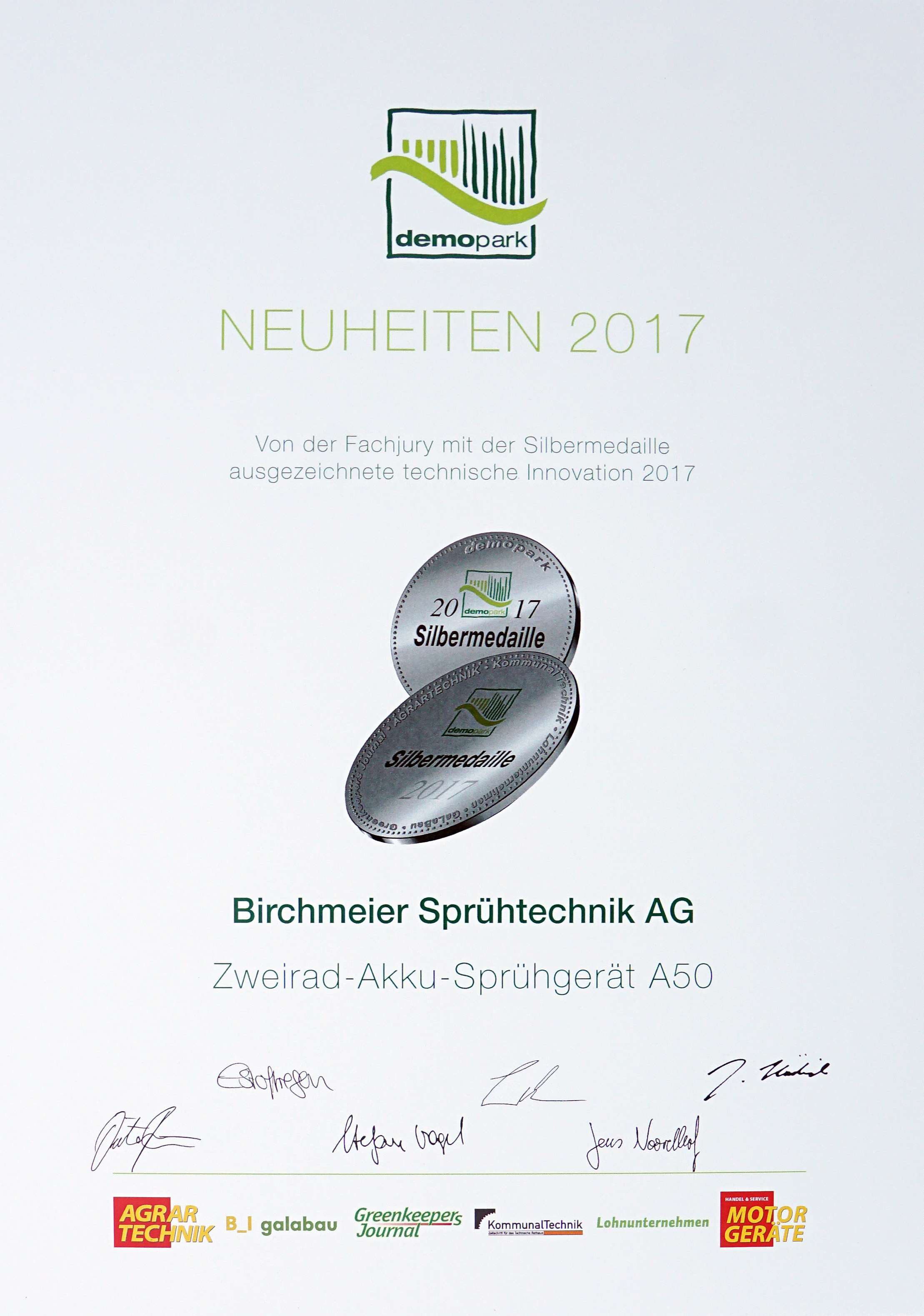 Médaille d'argent pour l'excellente innovation technique du pulvérisateur à deux roues A 50