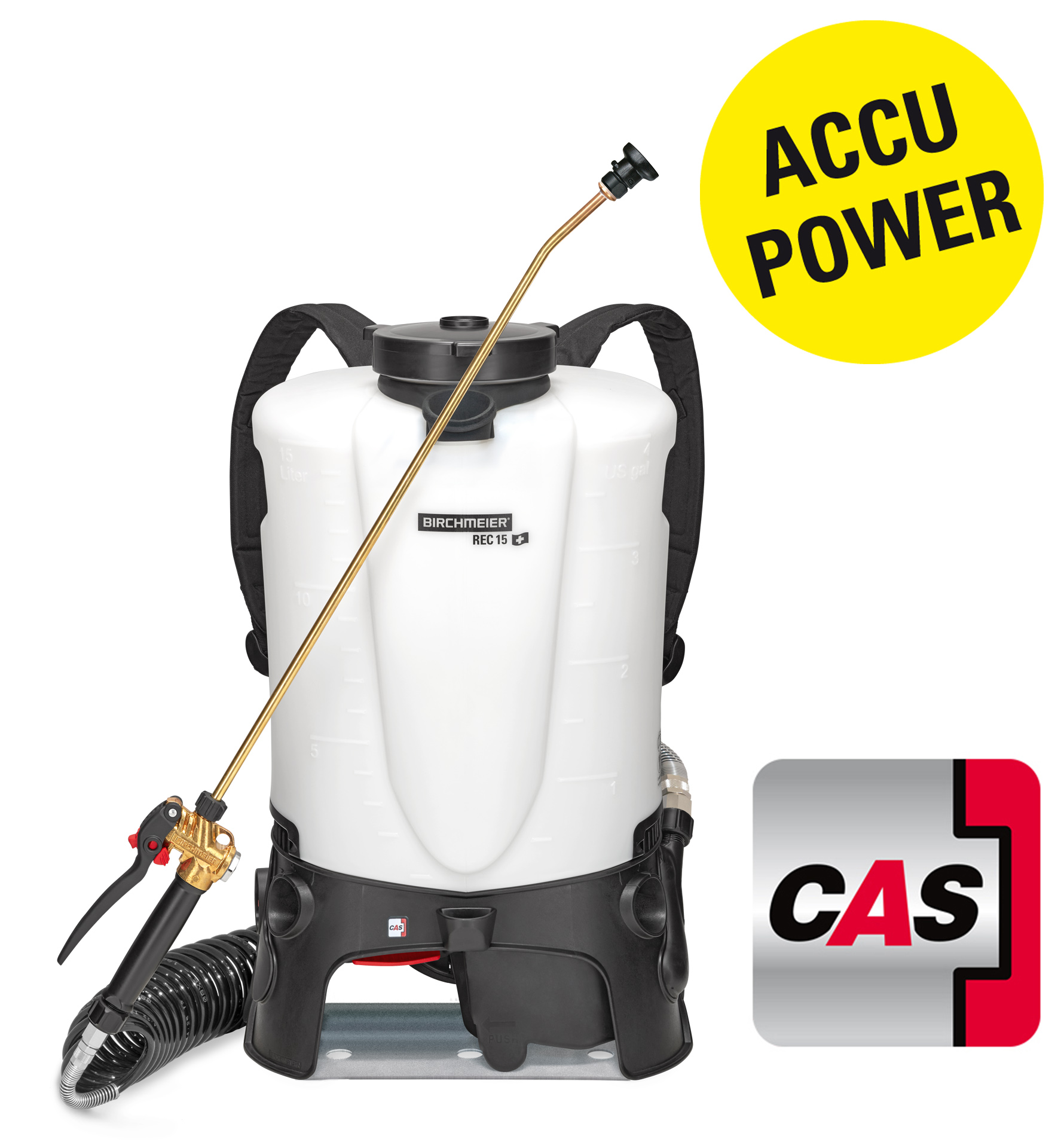 Référence: 12101501 / EAN: 7611034012315Pulvérisateur à dos à pression constante, avec batterie CAS.
