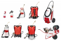 pulvérisateurs à dos ou sur roues avec des flexibles pouvant atteindre 50 m de long.