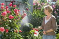 Utiliser des rallonges télescopiques pour les rosiers grimpants. En cas d'infestation légère, un pulvérisateur de grande portée tel que le Florajet suffit, même pour les grandes surfaces.